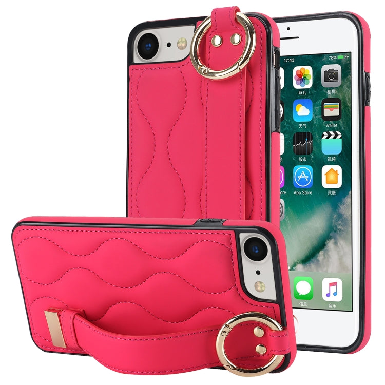 Funda para iPhone 7 Antideslizante Cobertura Completa Anillo PU con Muñequera (Rosa Roja)