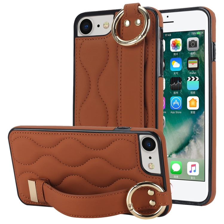 Funda para iPhone 7 Antideslizante Cobertura Completa Anillo PU con Muñequera (Marrón)