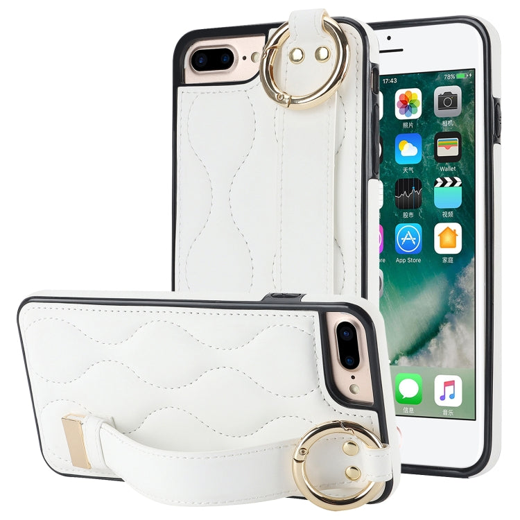 Funda para teléfono iPhone 7 Plus Antideslizante Cobertura Completa Anillo PU con Muñequera (Blanco)