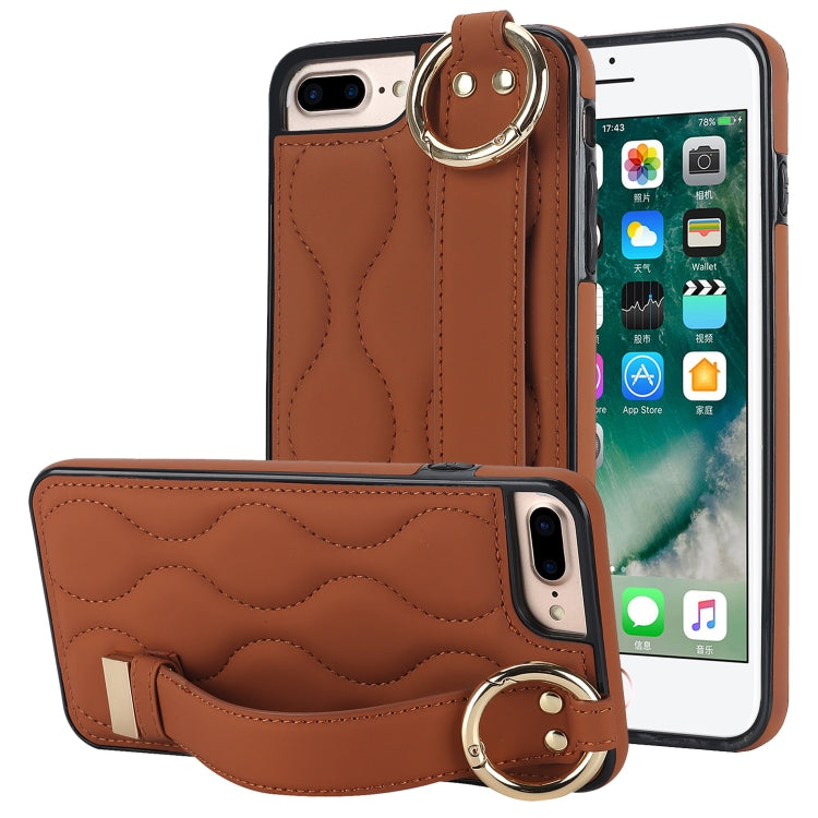 Funda para teléfono iPhone 7 Plus Antideslizante Cobertura Completa Anillo PU con Muñequera (Marrón)