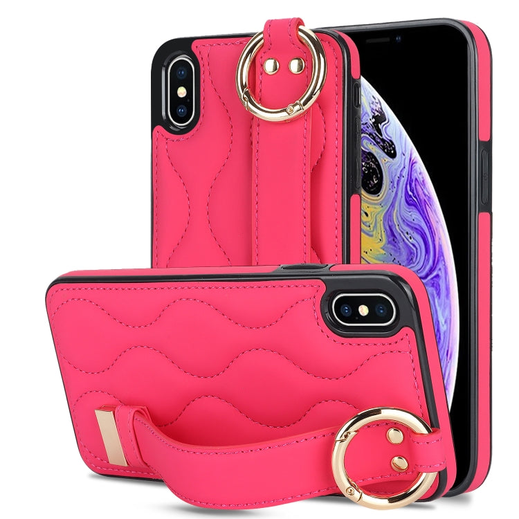 Funda para Teléfono iPhone Xs Antideslizante Cobertura Completa Anillo PU con Muñequera (Rosa Roja)
