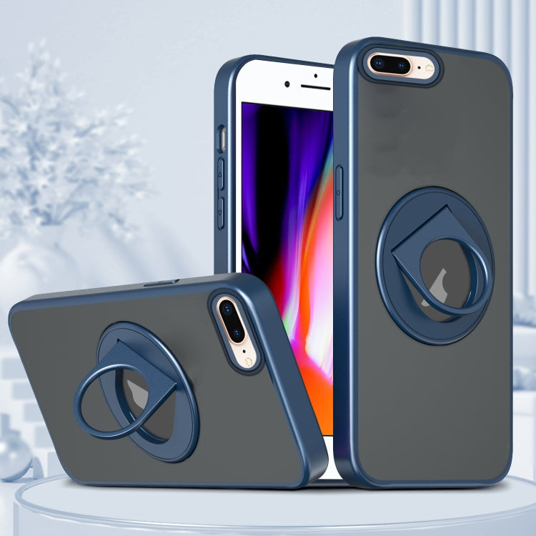 Estuche Magnético para Teléfono iPhone 8 Plus 7 Plus con Anillo Giratorio (Azul)