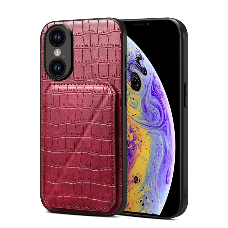 Funda Trasera para iPhone Xs / X Piel de Cocodrilo de Imitación con Soporte (Rojo Rosa)