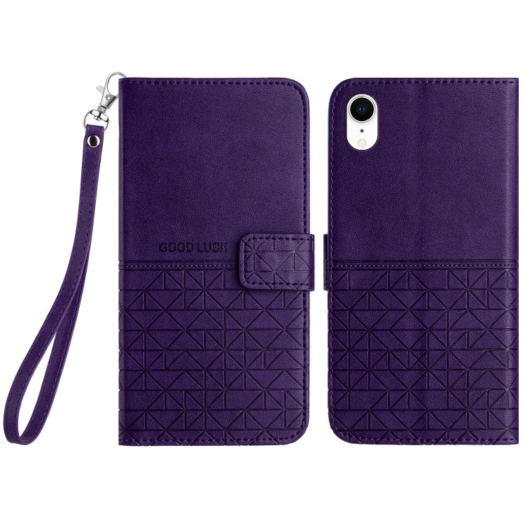 Funda de Cuero para iPhone Xr con Textura Rómbica y Cordón (Púrpura)