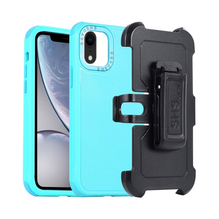 Funda para Teléfono iPhone Xr 3 en 1 PC y TPU con Funda Deslizante (Azul + Azul Cielo)
