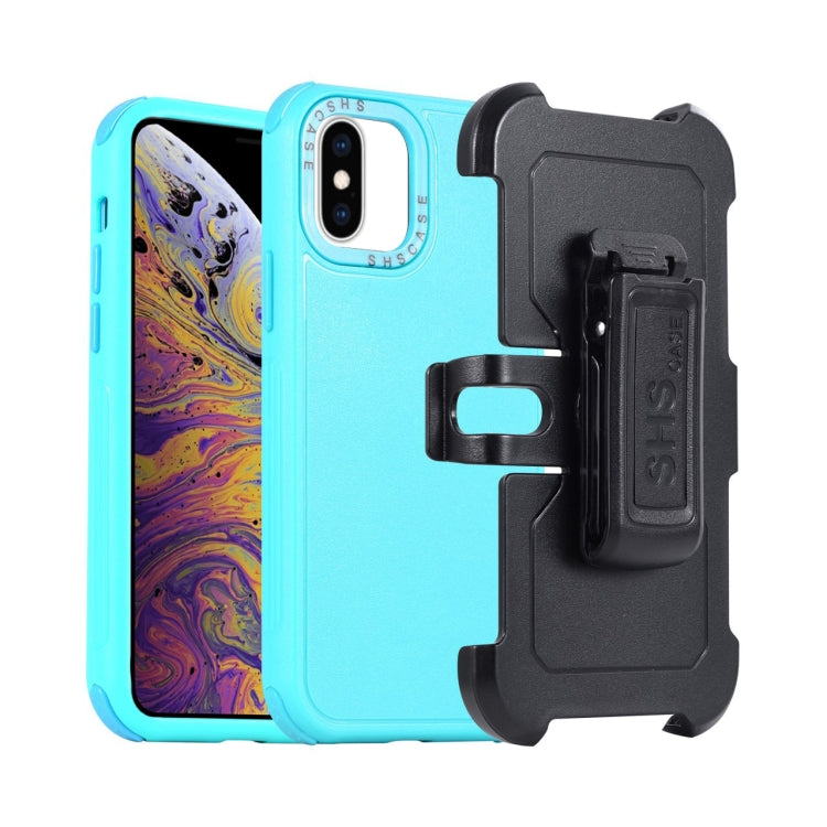 Funda para Teléfono iPhone X / Xs 3 En 1 PC y TPU con Funda Deslizante (Azul + Azul Cielo)