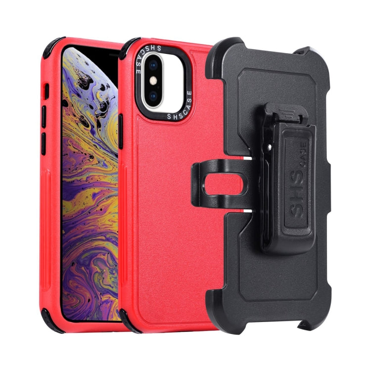 Funda para Teléfono iPhone X / Xs 3 en 1 PC y TPU con Funda Deslizante (Rojo + Negro)