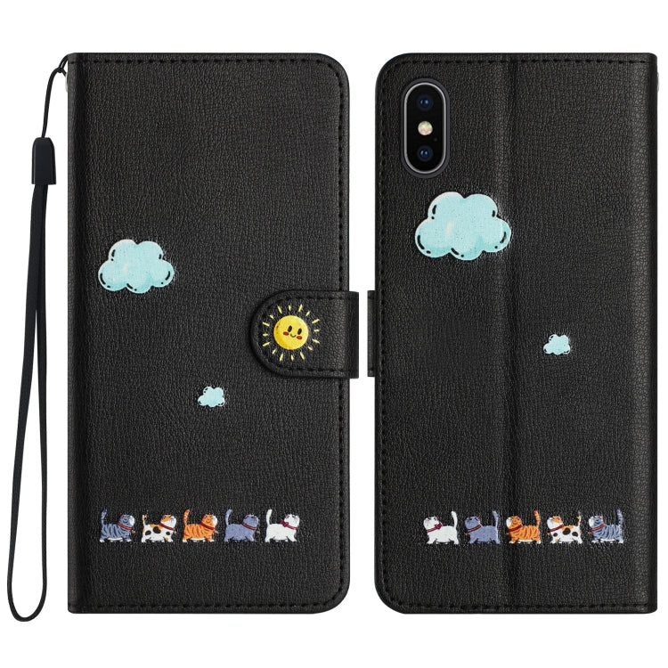 Funda de Cuero para Teléfono iPhone Xs / X con Gatos de Dibujos Animados (Negro)