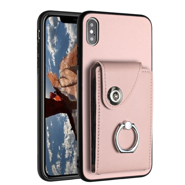 Funda para teléfono iPhone X Xs con soporte para anillo y bolsa para tarjeta (Rosa)