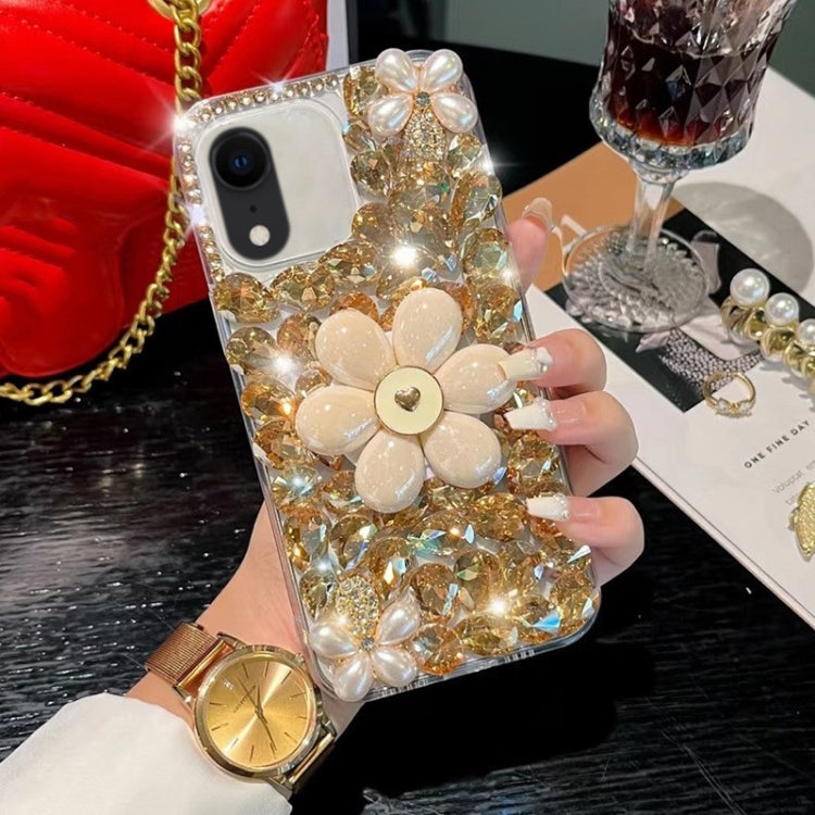 Funda para Teléfono iPhone Xr con Soporte de Girasol y PC con Diamantes Colocados a Mano (Dorado)