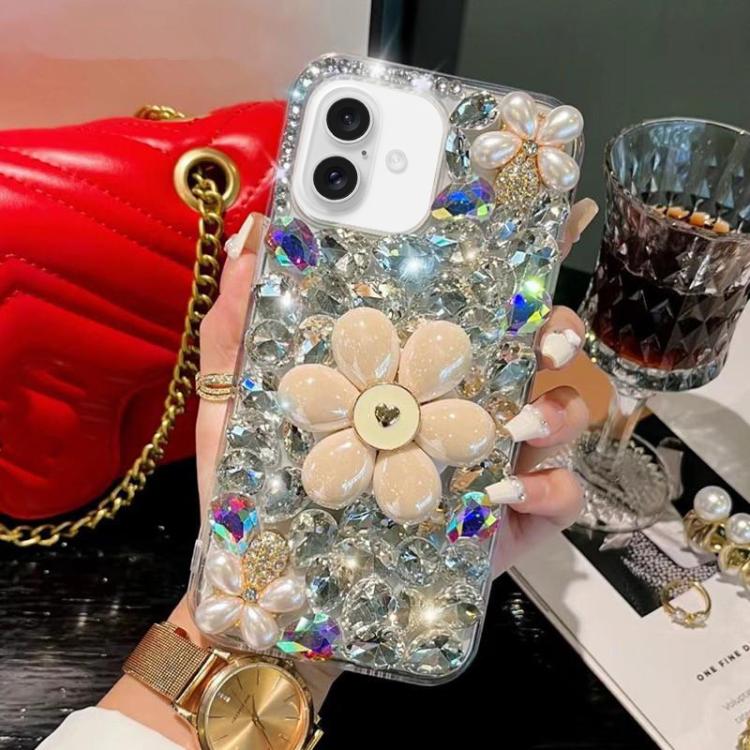 Funda para Teléfono iPhone 7/8 con Soporte de Girasol y PC con Diamantes Colocados a Mano (Blanco)
