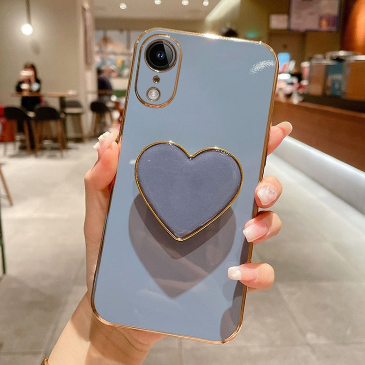 Funda para teléfono TPU iPhone Xr Galvanoplastia Love Heart Holder (Púrpura)