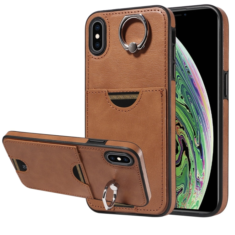 Funda para Teléfono iPhone Xs Max con Soporte para Anillo y Ranura para Tarjeta (Marrón)