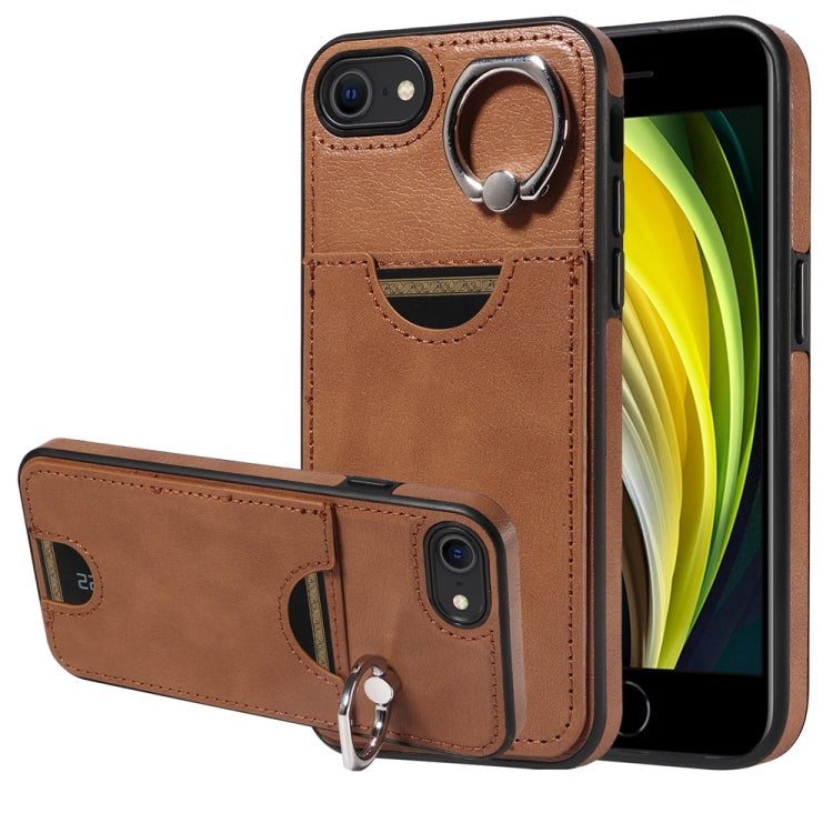 Funda para Teléfono iPhone 2022/2020/8/7 con Soporte Anillo y Ranura Tarjeta (Marrón)