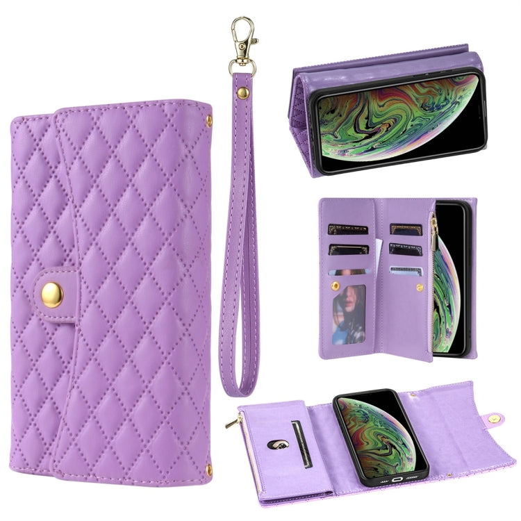 Estuche para Teléfono iPhone Xr Cuero Rómbico con Billetera MultiTarjeta y Cremallera (Púrpura)