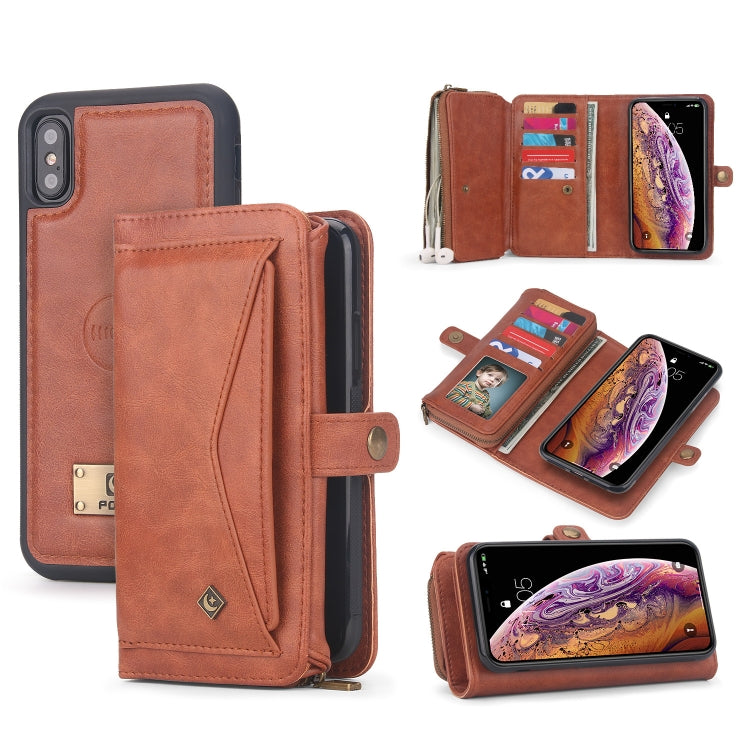 Funda para iPhone Xs Max Cuero con Billetera y Cremallera Multifuncional (Marrón)