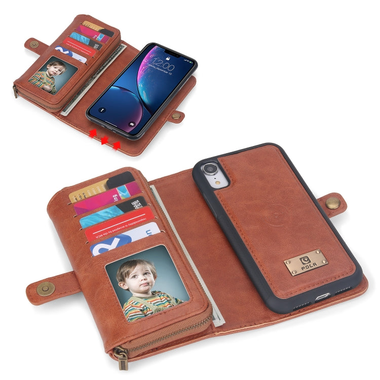 Funda para Teléfono iPhone Xr Cuero con Billetera y Cremallera Multifuncional (Marrón)