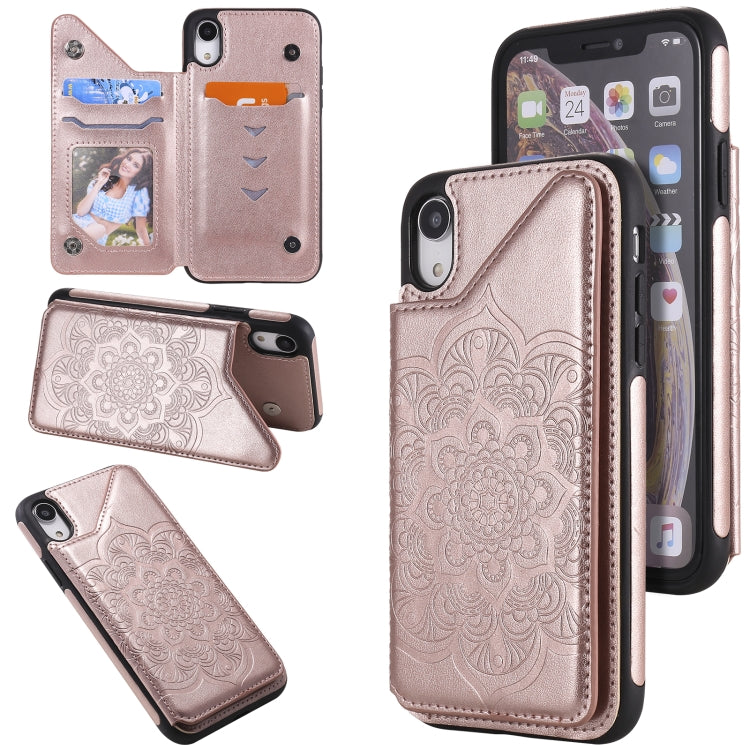 Funda Protectora para iPhone Xr con Soporte, Ranuras para Tarjetas y Marco de Fotos (Oro Rosa)