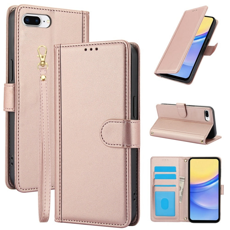 Funda de Cuero para iPhone 7 Plus 8 Plus con Ranuras para Tarjetas y Doble Cordón (Oro Rosa)