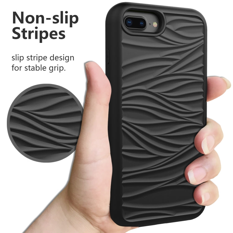 Funda Protectora iPhone 6/7/8 Plus Wave Pattern 3 En 1 Silicona y PC (Negro + Rosa Fuerte)