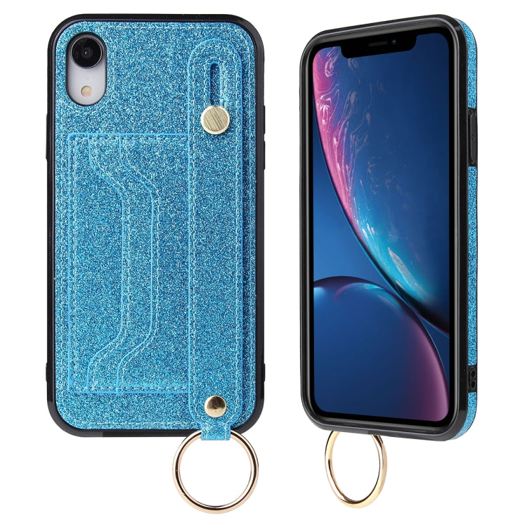 Estuche Protector para iPhone X Xs Glitter Powder PU + TPU con Soporte Ranuras Tarjetas Correa (Azul)