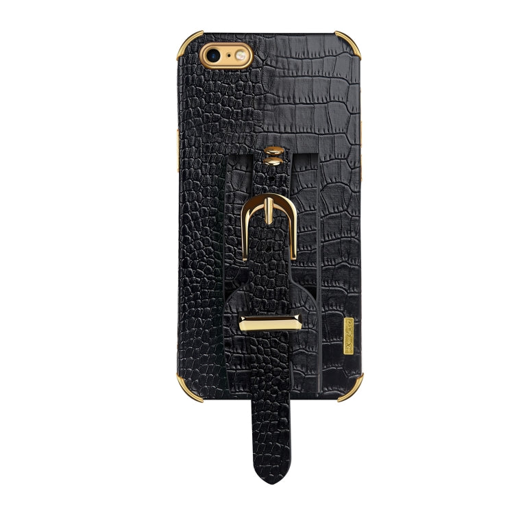 Funda iPhone 6 TPU Electroplated Piel Estampado Cocodrilo con Correa de Muñeca (Negro)