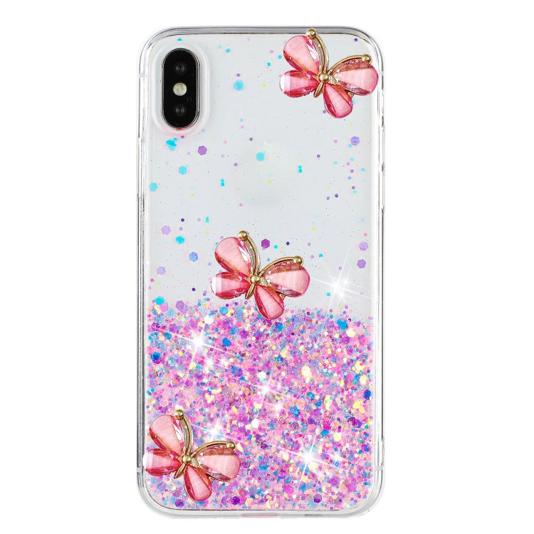Funda TPU iPhone Xr Diseño Mariposa Purpurina Cielo Estrellado Luminoso (Rosa)