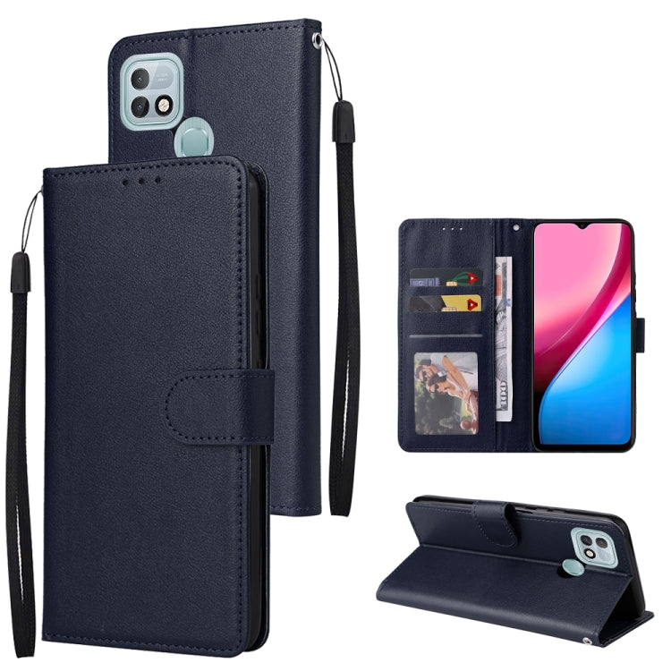 Estuche de Cuero para Infinix Hot 11S con Tapa Horizontal y Tres Ranuras para Tarjetas (Azul Marino)