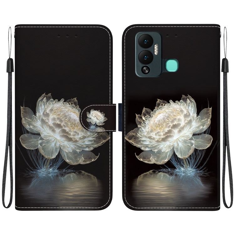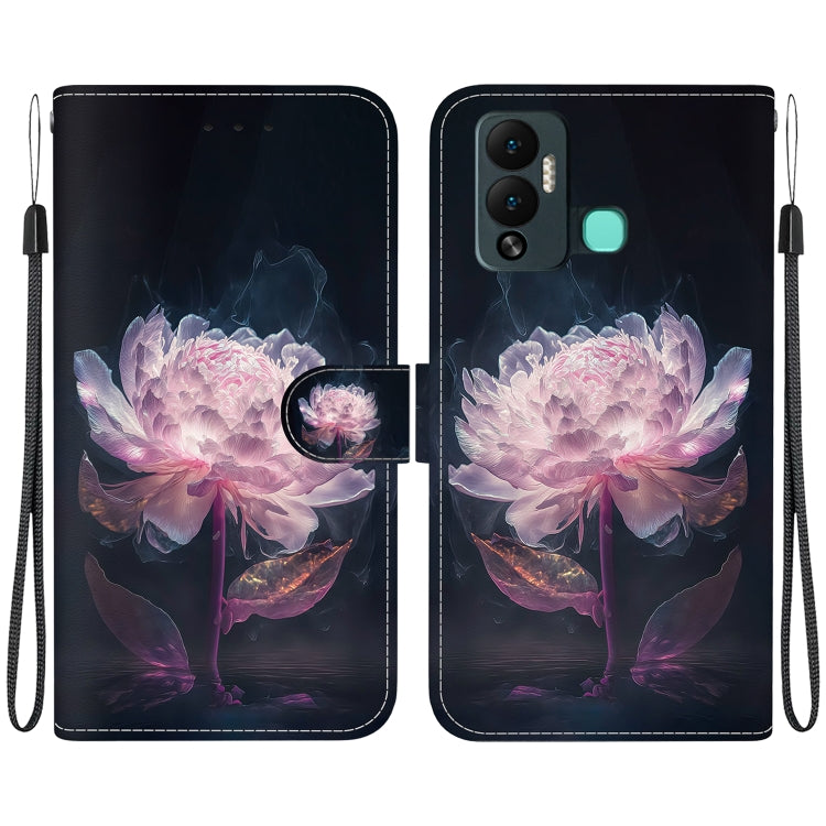Estuche de Cuero para Infinix Hot 20 con Dibujo Coloreado y Textura de Cristal (Peonía de Cristal)
