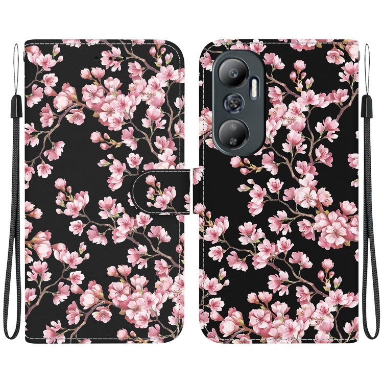 Estuche de Cuero para Infinix Hot 20 5G con Dibujo Coloreado y Textura de Cristal (Flor de Ciruelo)