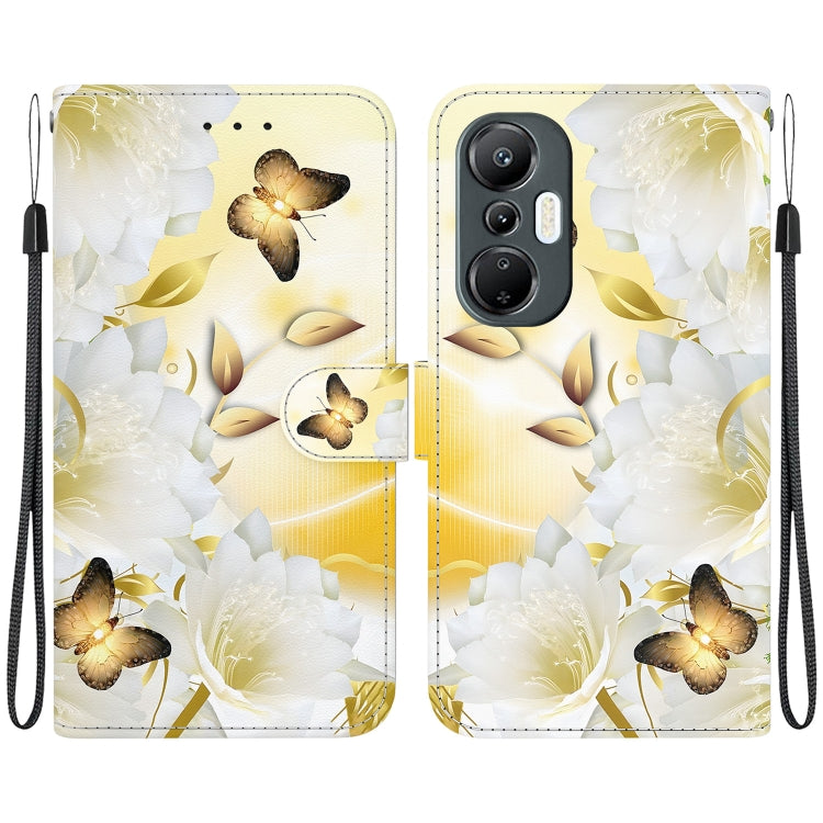 Estuche de Cuero para Infinix Hot 30 con Dibujo Coloreado y Textura de Cristal (Peonía Dorada)