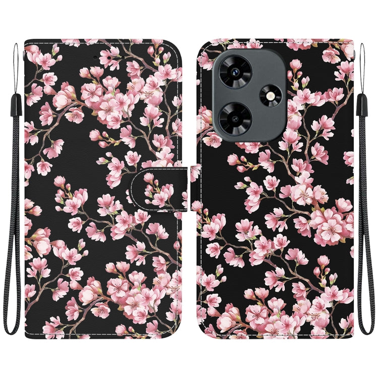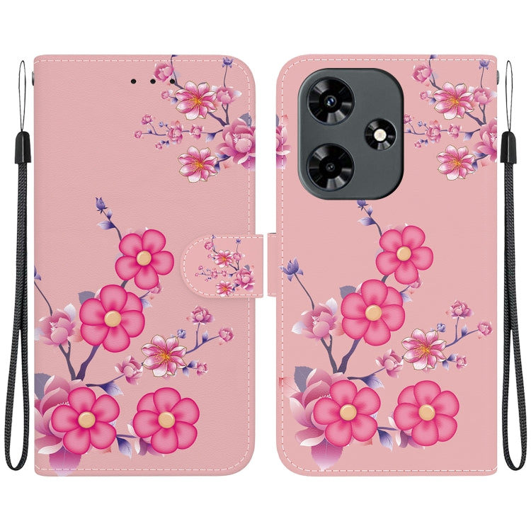 Estuche de Cuero para Infinix Hot 20 Play con Dibujo Coloreado y Textura de Cristal (Flor de Ciruelo)