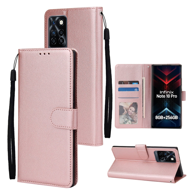 Estuche de Cuero para Infinix Note 10 Pro con Tapa Horizontal y Tres Ranuras para Tarjetas (Oro Rosa)