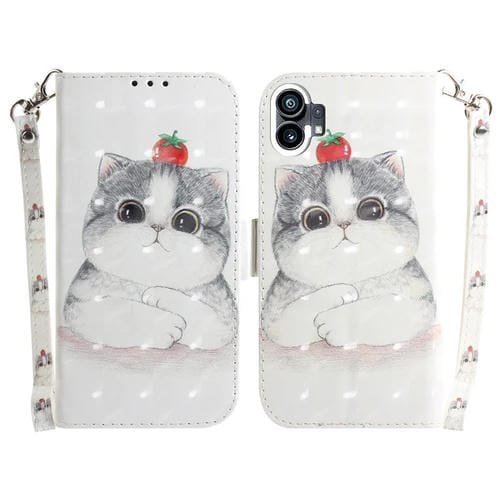 Estuche de Cuero para Nothing Phone 1 con Tapa Horizontal y Diseño 3D (Lindo Gato)