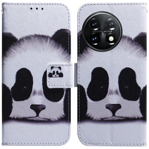 Estuche de Cuero para OnePlus 11 con Tapa y Dibujo Coloreado (Panda)