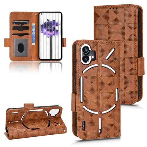 Estuche de Cuero para Nothing Phone 1 con Triángulo Simétrico (Marrón)