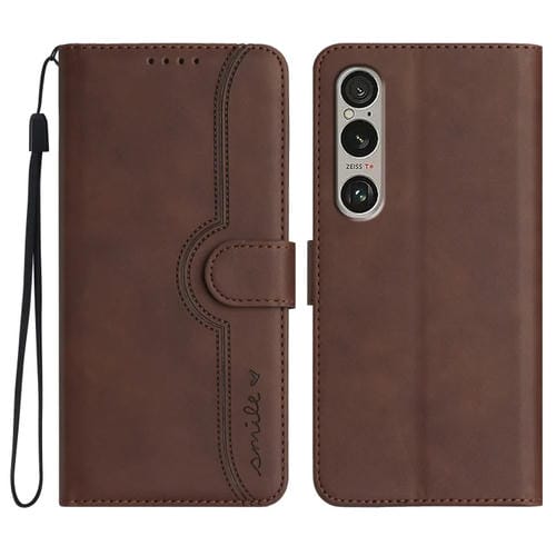 Estuche de Cuero para Sony Xperia 1 Vi con Sensación de Piel y Patrón de Corazón (Marrón)