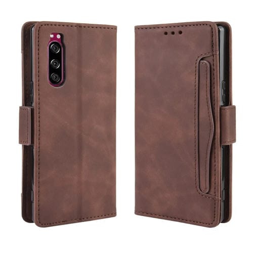 Estuche de Cuero para Sony Xperia 5 con Diseño de Pantorrilla y Ranura para Tarjeta (Marrón)