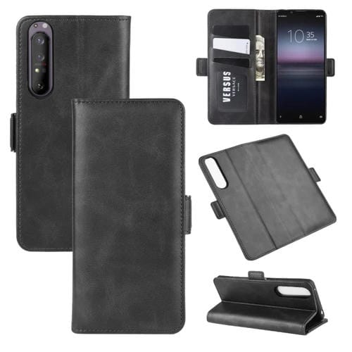 Estuche de Cuero para Sony Xperia 1 II Abatible Horizontal con Hebilla Magnética y Soporte (Negro)