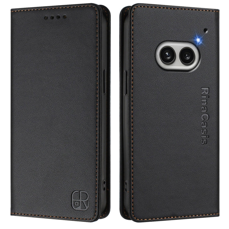 Estuche de Cuero Rfid para Nothing Phone 2A Rc01 con Doble Pliegue y Succión Magnética (Negro)