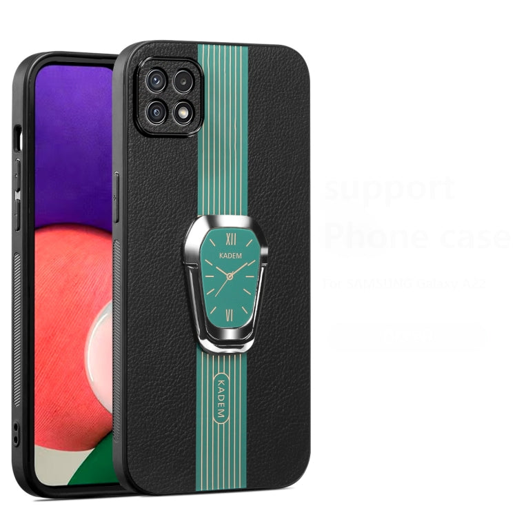 Estuche Magnético para Samsung Galaxy A22 5G con Parte Trasera de Cuero Litchi y Soporte (Verde)