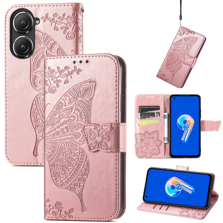 Estuche para Asus Zenfone 9 Butterfly Love Flower de Cuero en Relieve (Oro Rosa)