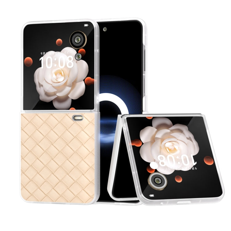 Estuche para Honor Magic V Flip de PU con Textura Tejida y Marco Translúcido Esmerilado (Beige)