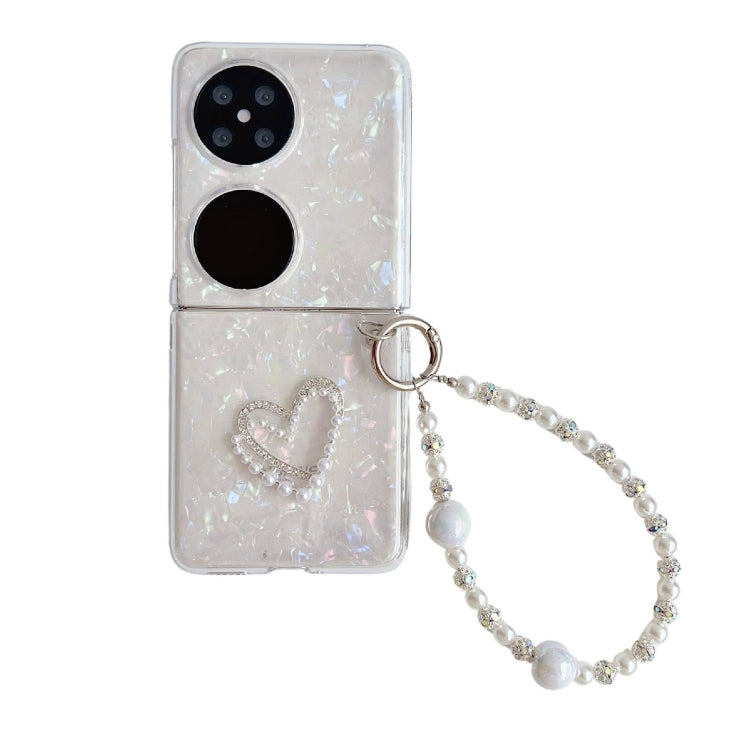 Estuche para Huawei Pocket 2 con Patrón de Corazón y Textura de Concha Nacarada con Pulsera (Blanco)