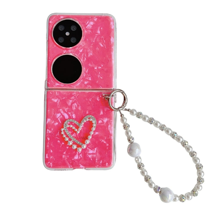 Estuche para Huawei Pocket 2 con Patrón de Corazón y Textura de Concha Nacarada con Pulsera (Rosa)
