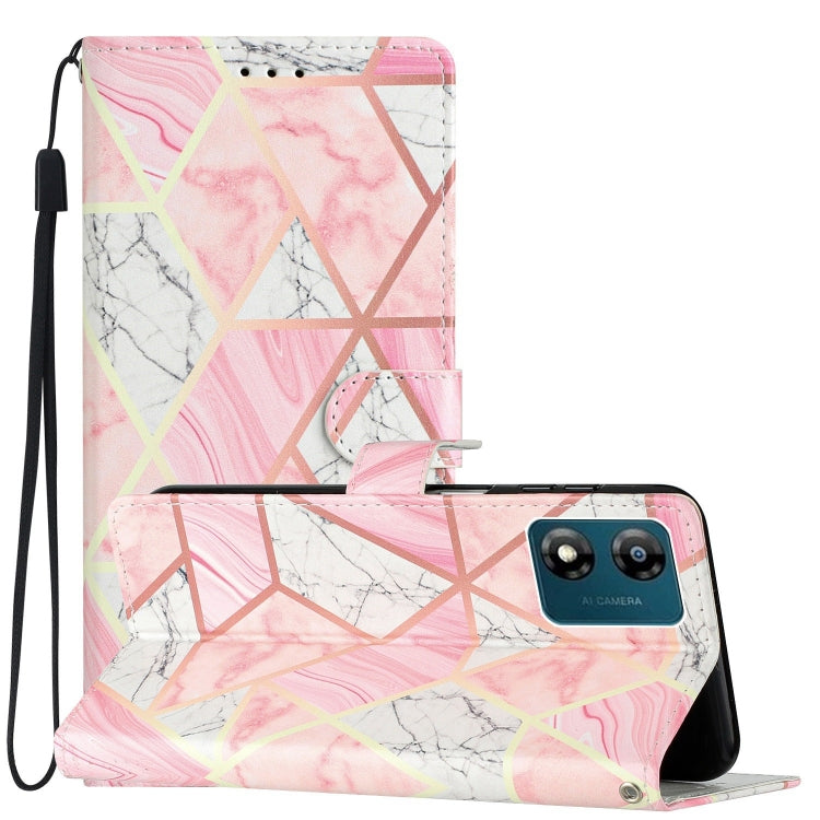 Estuche para Motorola Moto E13 de Cuero con Dibujo Coloreado Mármol Rosa