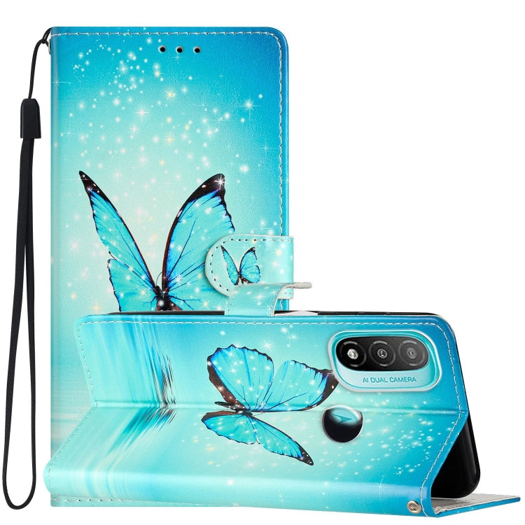 Estuche para Motorola Moto E20 / E30 / E40 de Cuero con Dibujo Coloreado (Mariposa Azul)