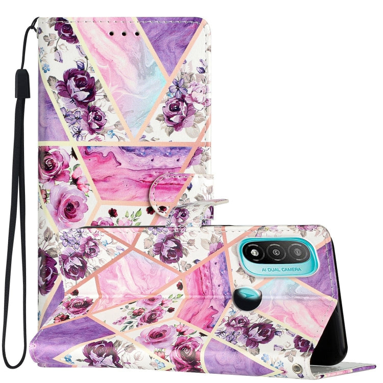Estuche para Motorola Moto E20 E30 E40 de Cuero con Dibujo Coloreado (Mármol Púrpura)