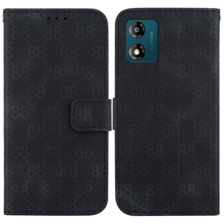 Estuche para Motorola Moto E13 de Cuero en Relieve con Doble Forma de 8 (Negro)