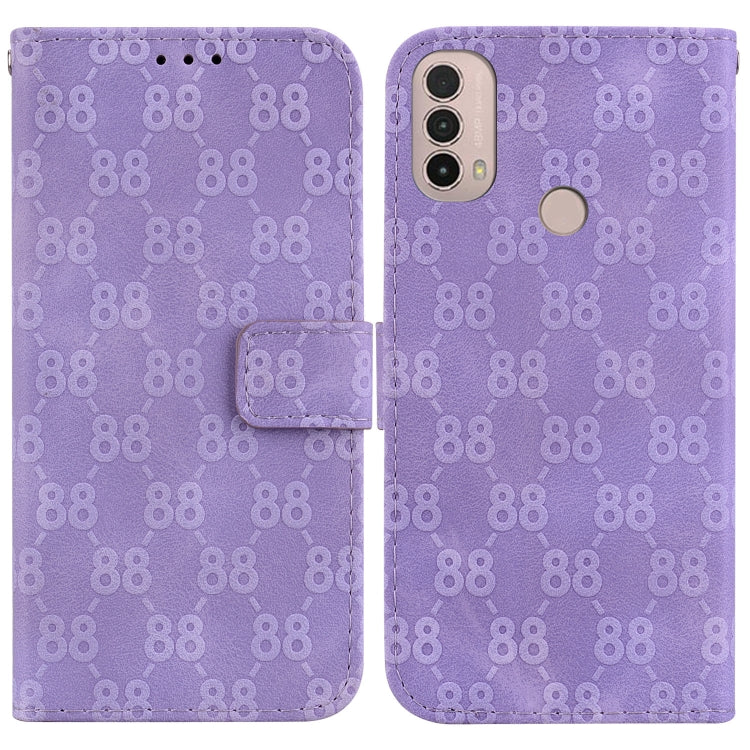 Estuche para Motorola Moto E13 de Cuero En Relieve con Doble Forma de 8 (Púrpura)